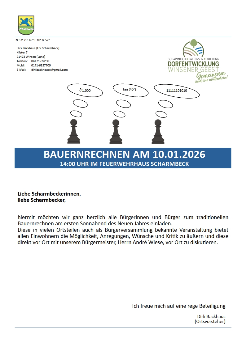 Nicht zuletzt aufgrund des Dorfentwicklungsprogammes könnt ihr euch nun auch auf Instgram unter scharmbeckov oder in der o.a. whatsApp Gruppe...